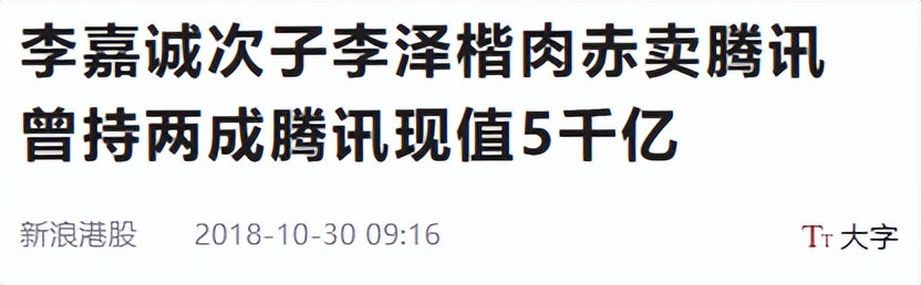 新浪港股:李嘉诚次子李泽楷肉赤卖腾讯 曾持两成腾讯现值5千亿